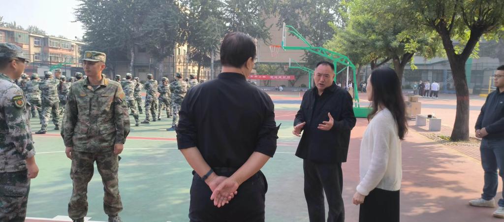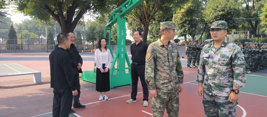 在训练休整间隙,刘韶晖与军训教官、参训学生亲切交流,详细了解具体训练计划和学生的训练感受,他对洹滨校区军训教官的辛勤付出表示感谢,对同学们在军训期间表现出的昂扬向上的精神风貌给予充分肯定。他鼓励同学们在训练中服从命令、刻苦训练,突破自我、释放青春,以饱满的精神状态上好军训这堂课,通过军训进一步强化组织纪律,增强国防观念,发扬集体主义精神,提升国防意识和军事素养,成为有理想、敢担当、能吃苦、肯奋斗的新时代好青年。