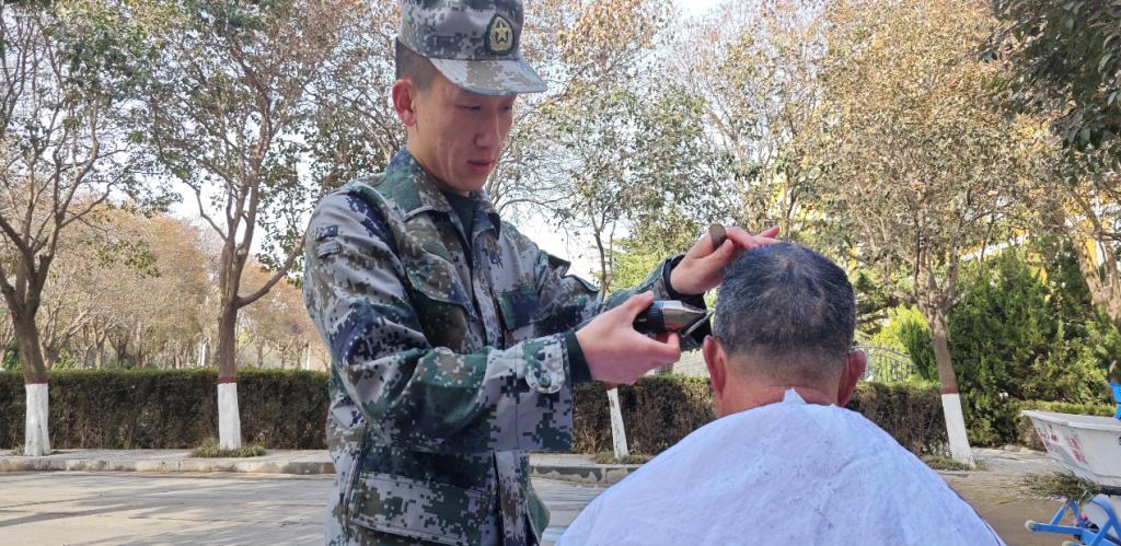 活动现场不仅有我校师生,还有为学校服务的工作人员。他们的到来不仅给活动现场增添了温馨的氛围,也是对我校退伍大学生工作的充分肯定。退役大学生神情专注,技艺娴熟,灵巧的剪刀上下翻飞,赢得了广大师生的一致好评。